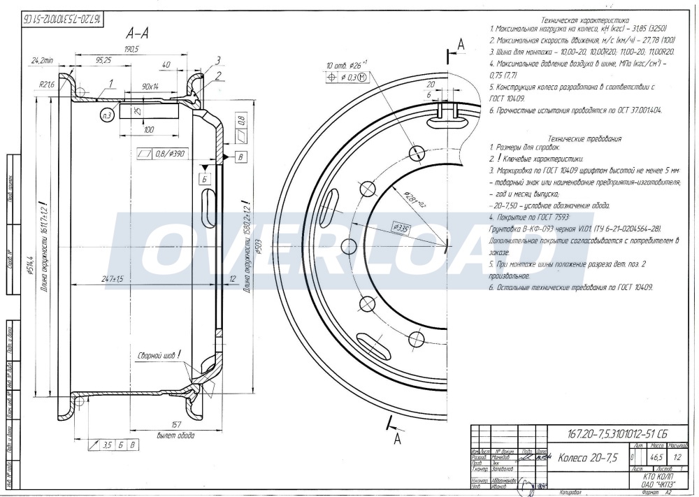Диск колёсный HARTUNG 7.5-20 10/335 d281 ET145