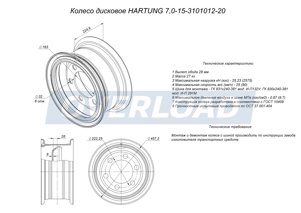 Диск колёсный HARTUNG 7.0-15 6/222,25 d163 ЕТ28